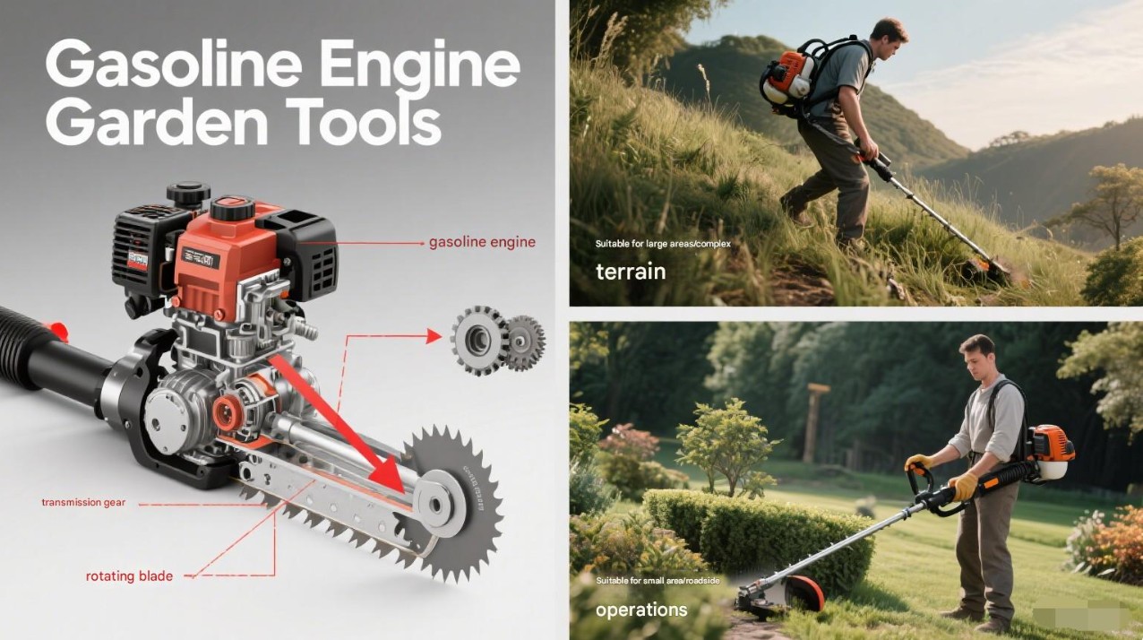 Gjelder for en rekke hageverktøy: Som en type hageverktøy for bensinmotorer er bensinbørstehjæreren egnet for gressklippere, og kan også brukes til multifunksjonshageverktøy som multifunksjonsbørsting og børsting, og oppfyller de forskjellige behovene til brukere i hagemedlikehold.