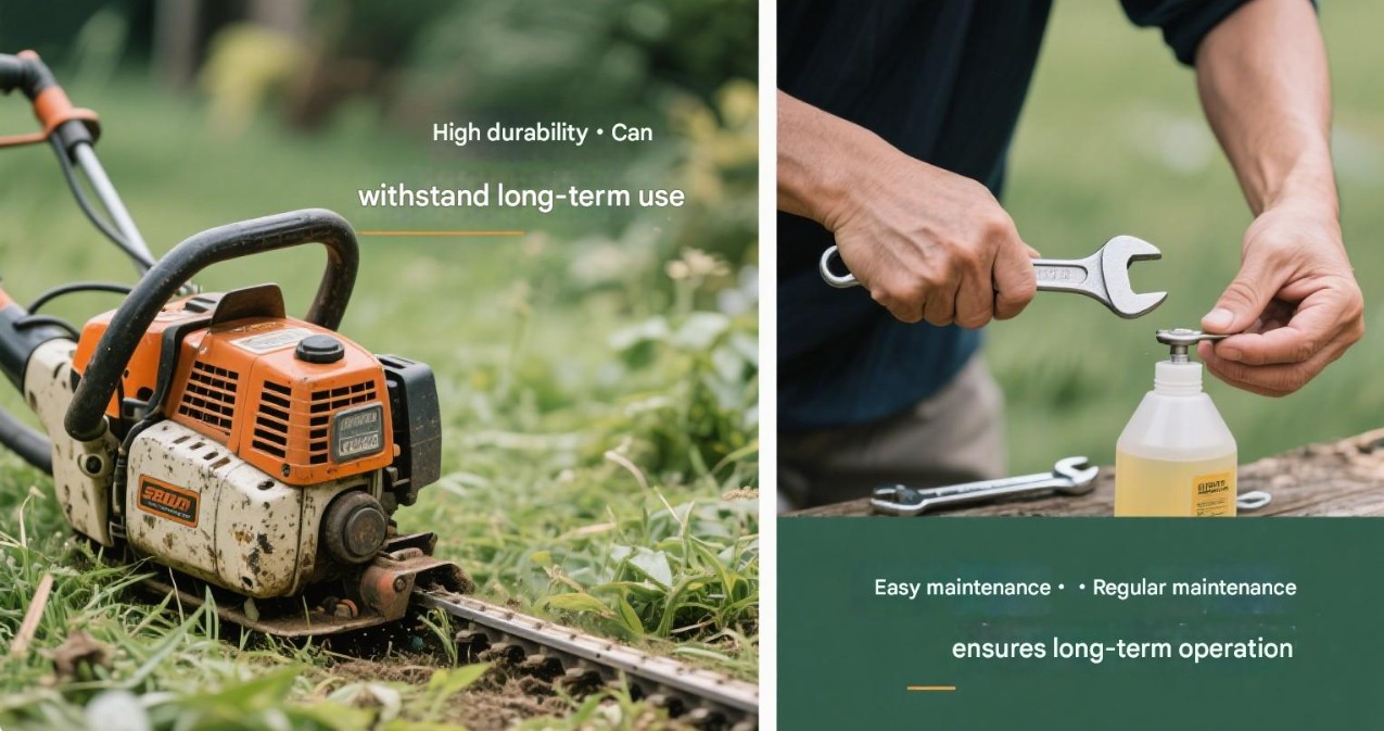Langvarig design: Bensinbørste-kutter er laget av materialer av høy kvalitet og avansert teknologi, med en lang levetidsdesign, som tåler langvarig bruk og forskjellige tøffe miljøer.