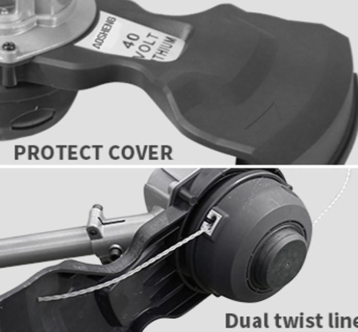 Hjem / Produkter / Litiumbatterihageverktøy / Strengtrimmer / A40DC350B01 40V litiumbatteri trådløs strengtrimmer