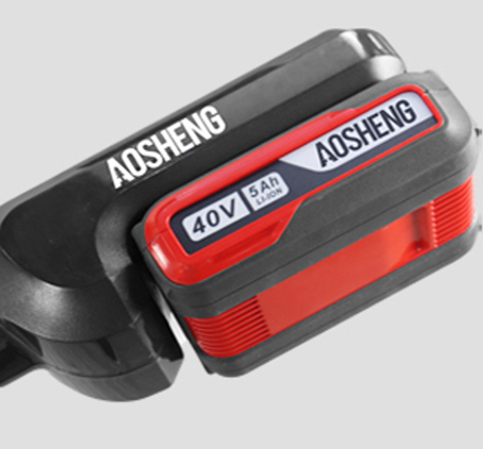 | 04Litiumbatteri Batteripakken bruker Samsung-batterier, 18650-25R. Med flere beskyttelsesfunksjoner, stabil ytelse og lettere, den aktuelle Aosheng 40V-batteripakken. |