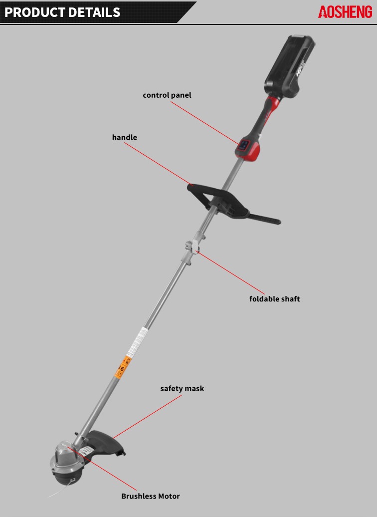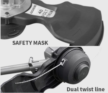 Hjem / Produkter / Litiumbatterihageverktøy / Strengtrimmer / A40DCZ350B01 40V litiumbatteri trådløs strengtrimmer sammenleggbar aksel